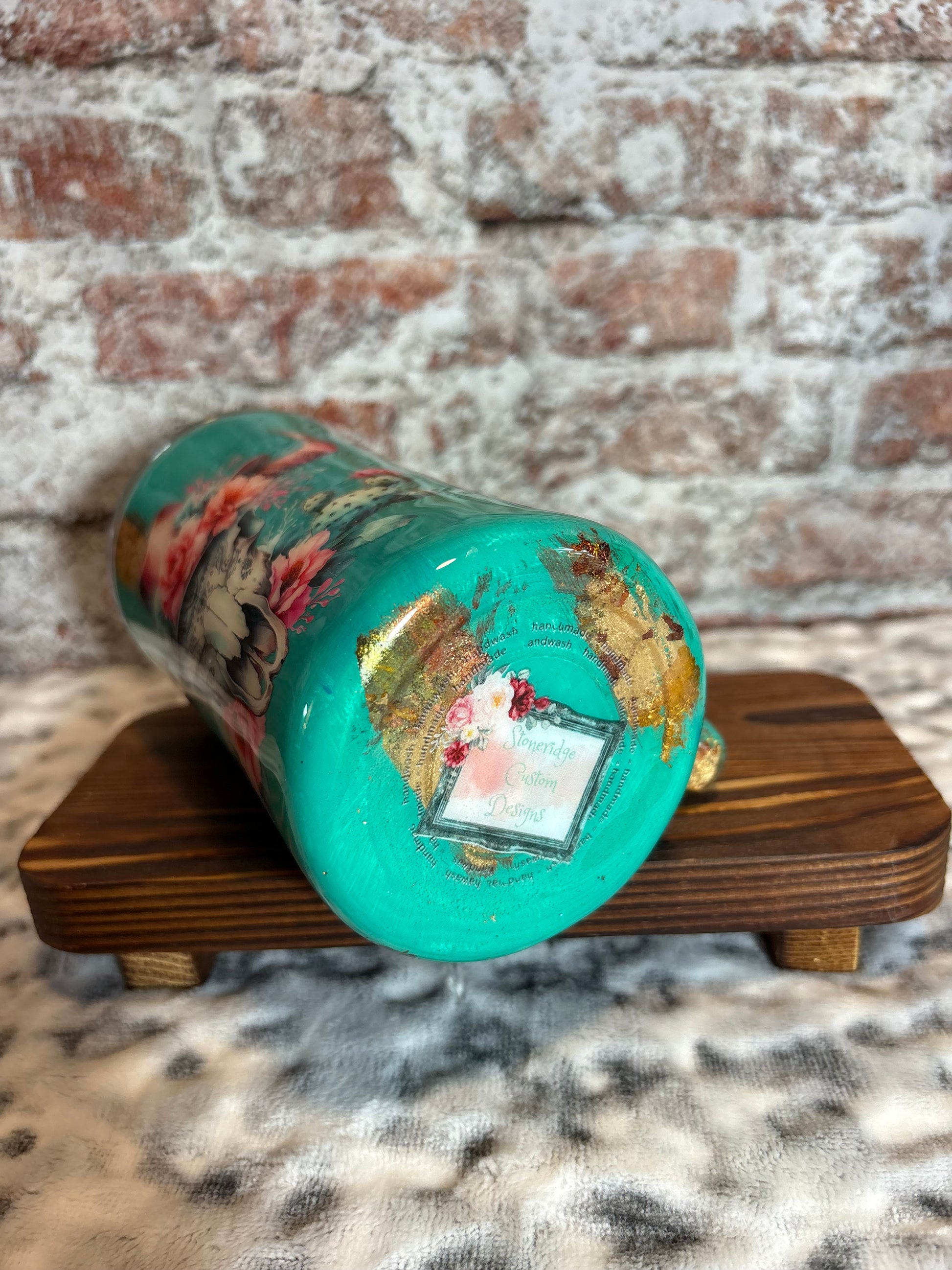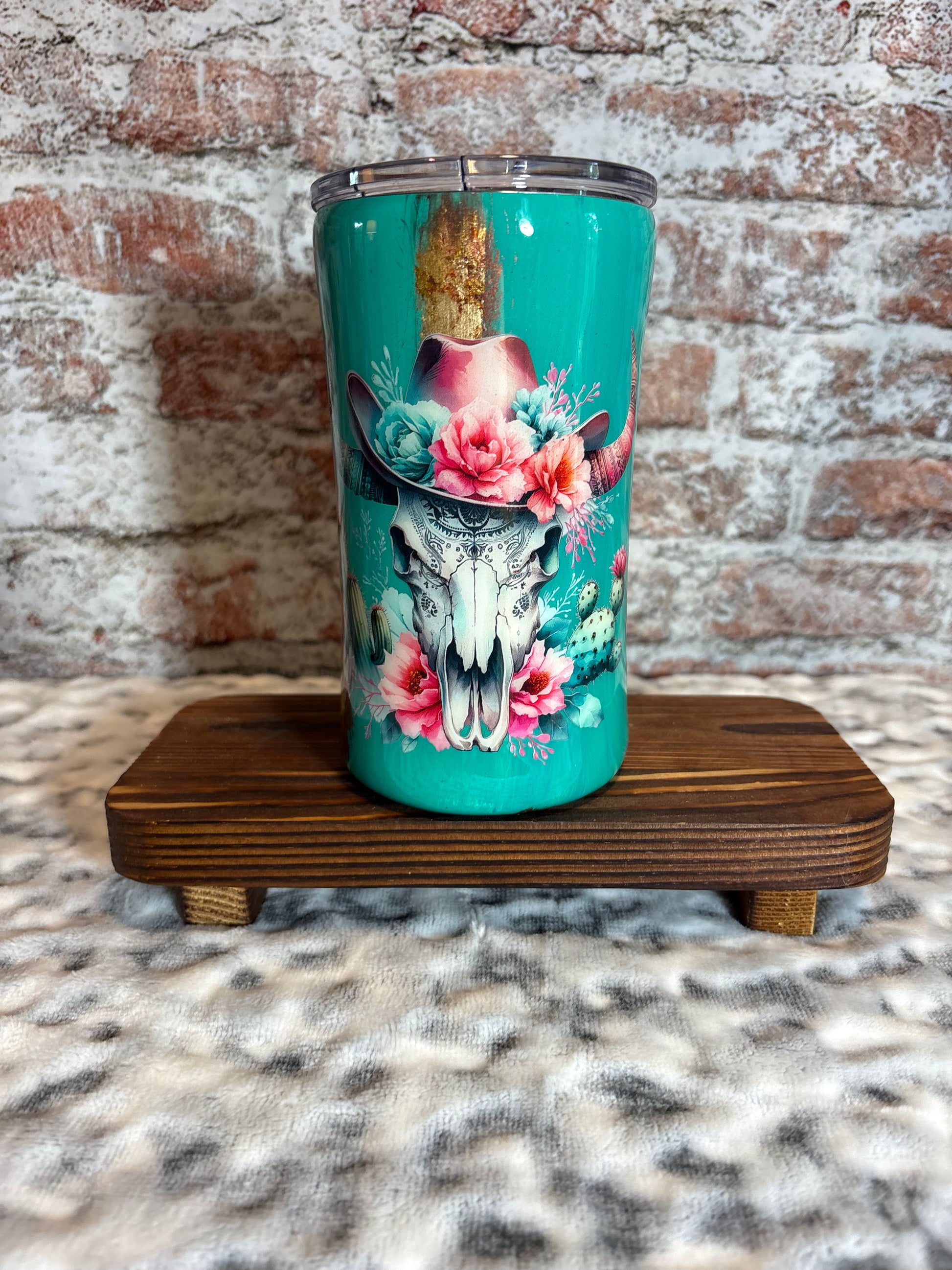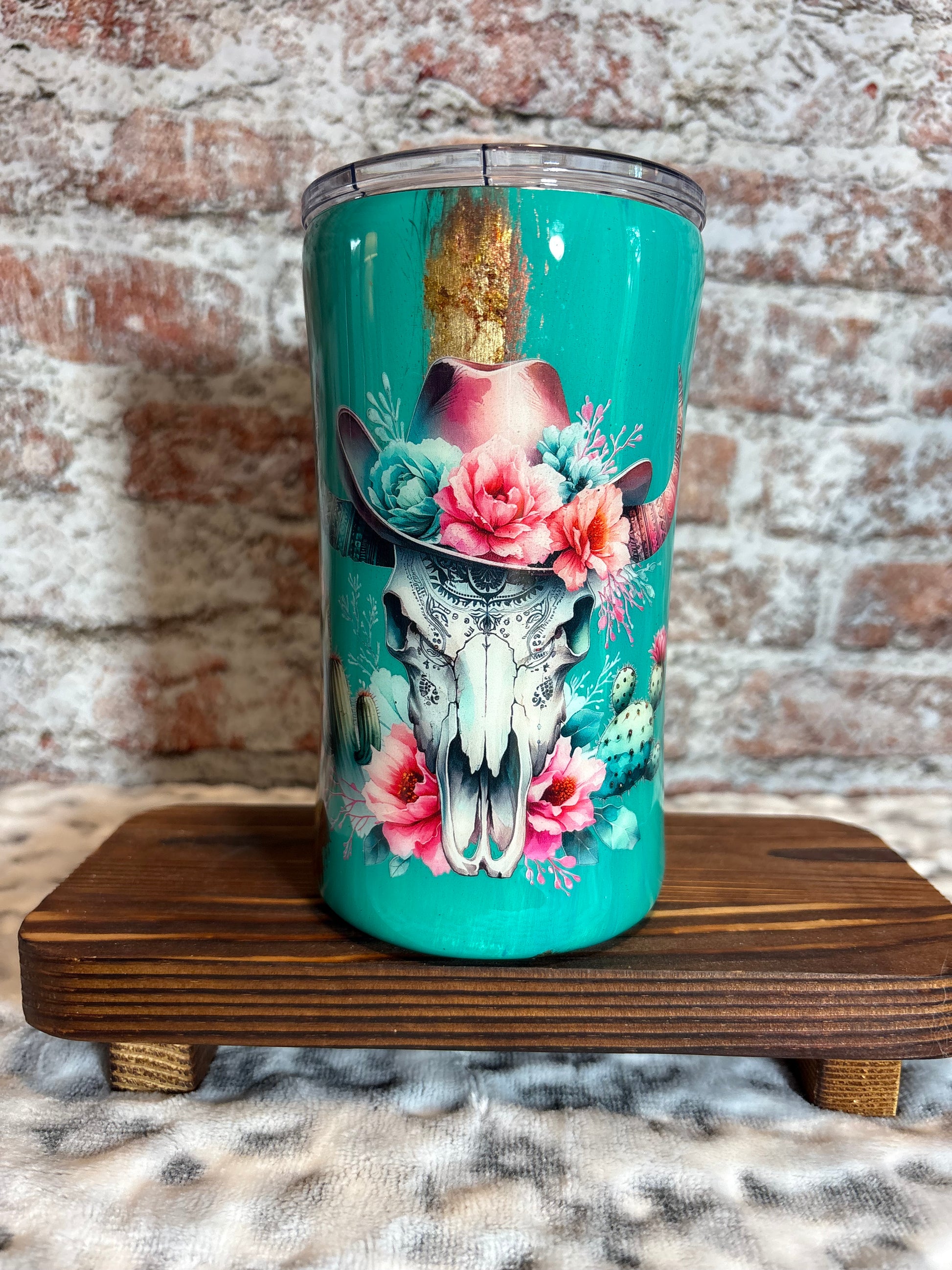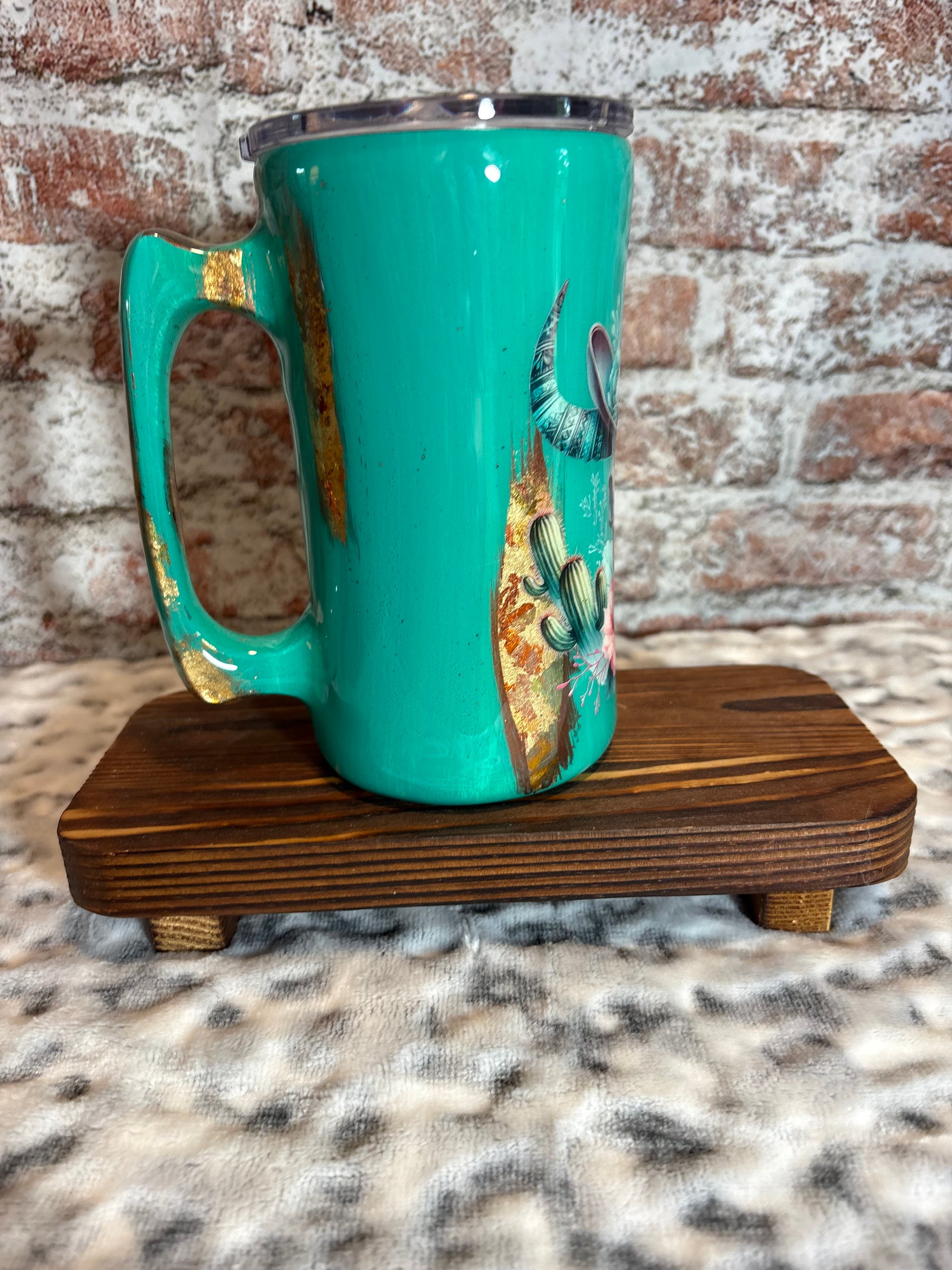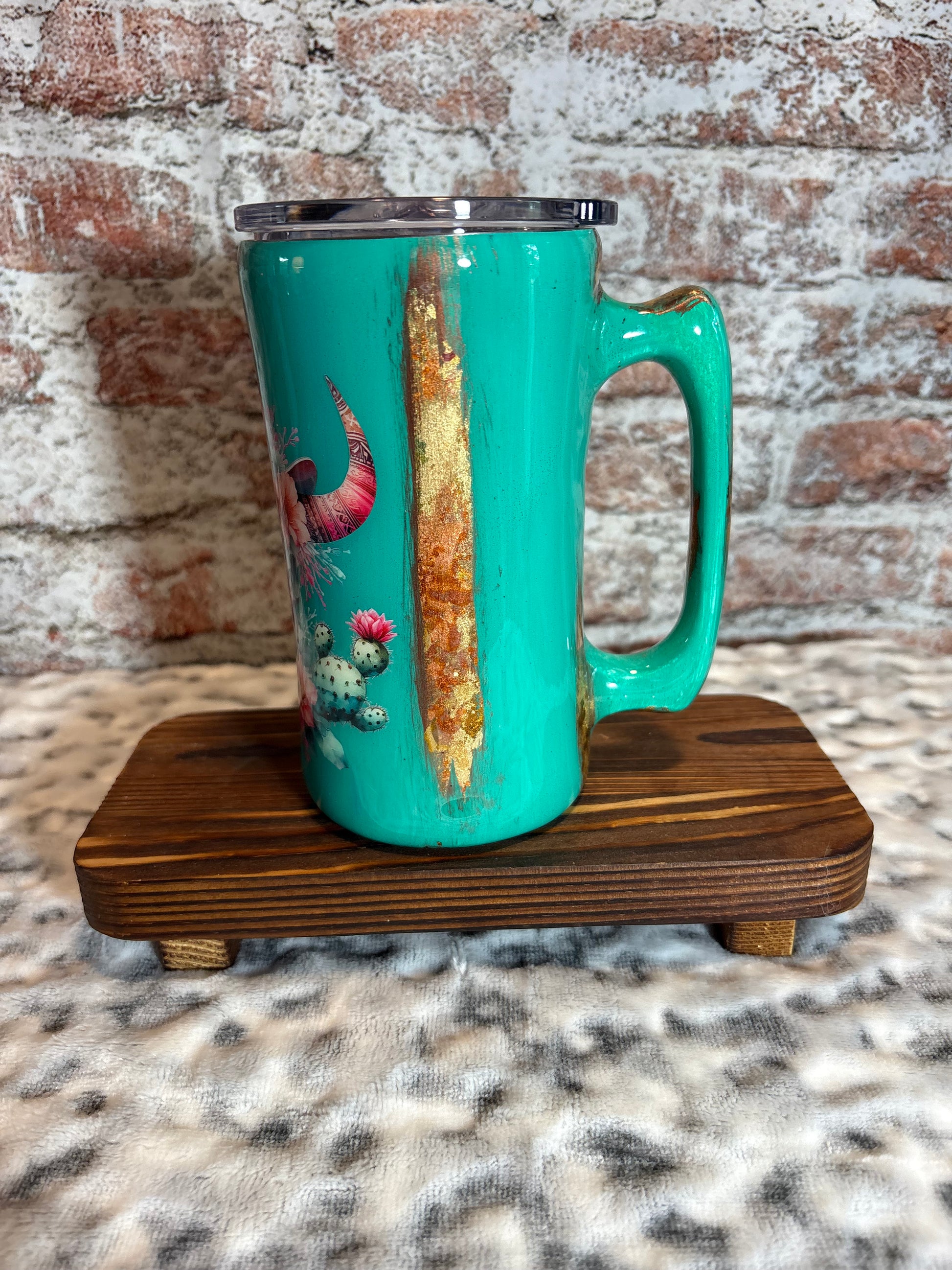 Rustic charm meets bold style with this 20oz handled tumbler featuring a desert cow skull, pink florals, and distressed gold detail. šŸŒµšŸ’– Perfect for coffee at sunrise, iced tea at sunset, and every rodeo in between.