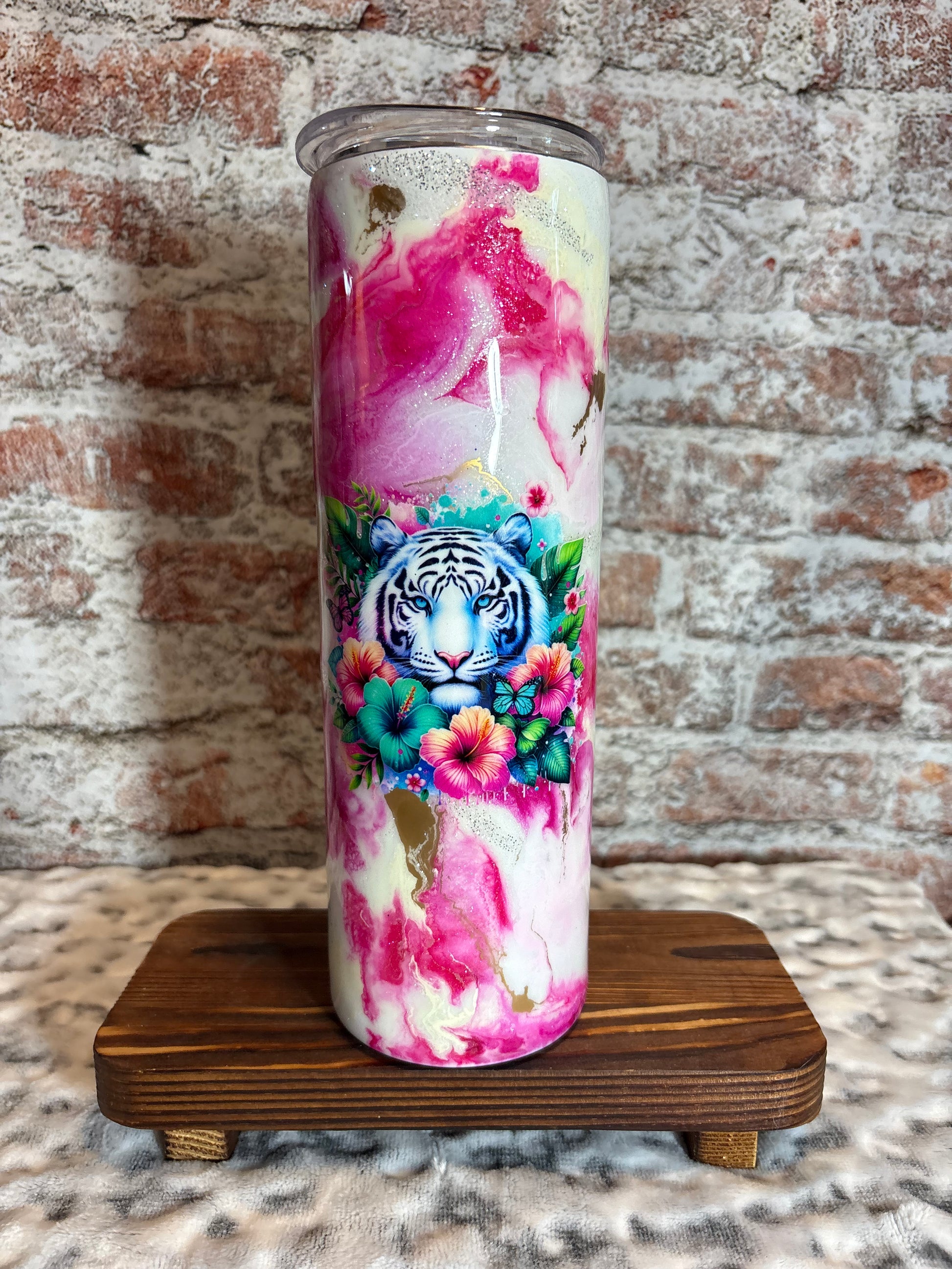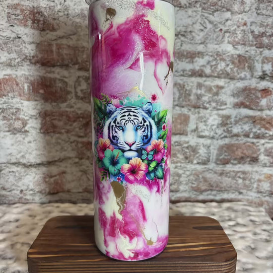 This 30oz skinny tumbler is a wild mix of hot pink swirls, gold accents, and a fierce white tiger framed by tropical florals. πΈπ΄ Itβs bold, beautiful, and ready to keep your drink icy cold or piping hot all day long!