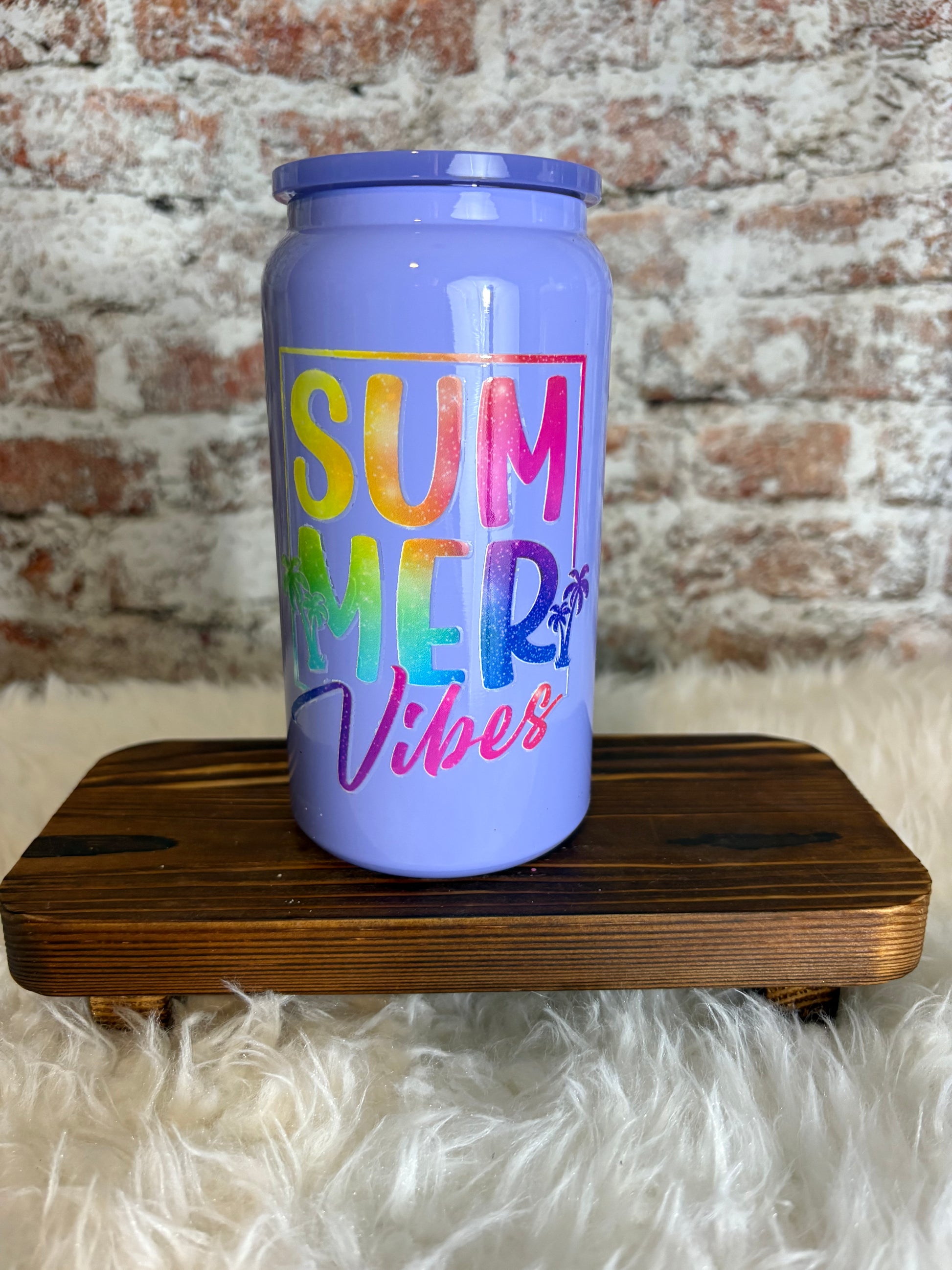 Catch the sunshine and bring the heat with this vibrant Summer Vibes 16 oz tumbler! Drenched in dreamy lilac and bursting with a rainbow ombré design, this stainless steel beauty screams beach days, pool parties, and tropical getaways.