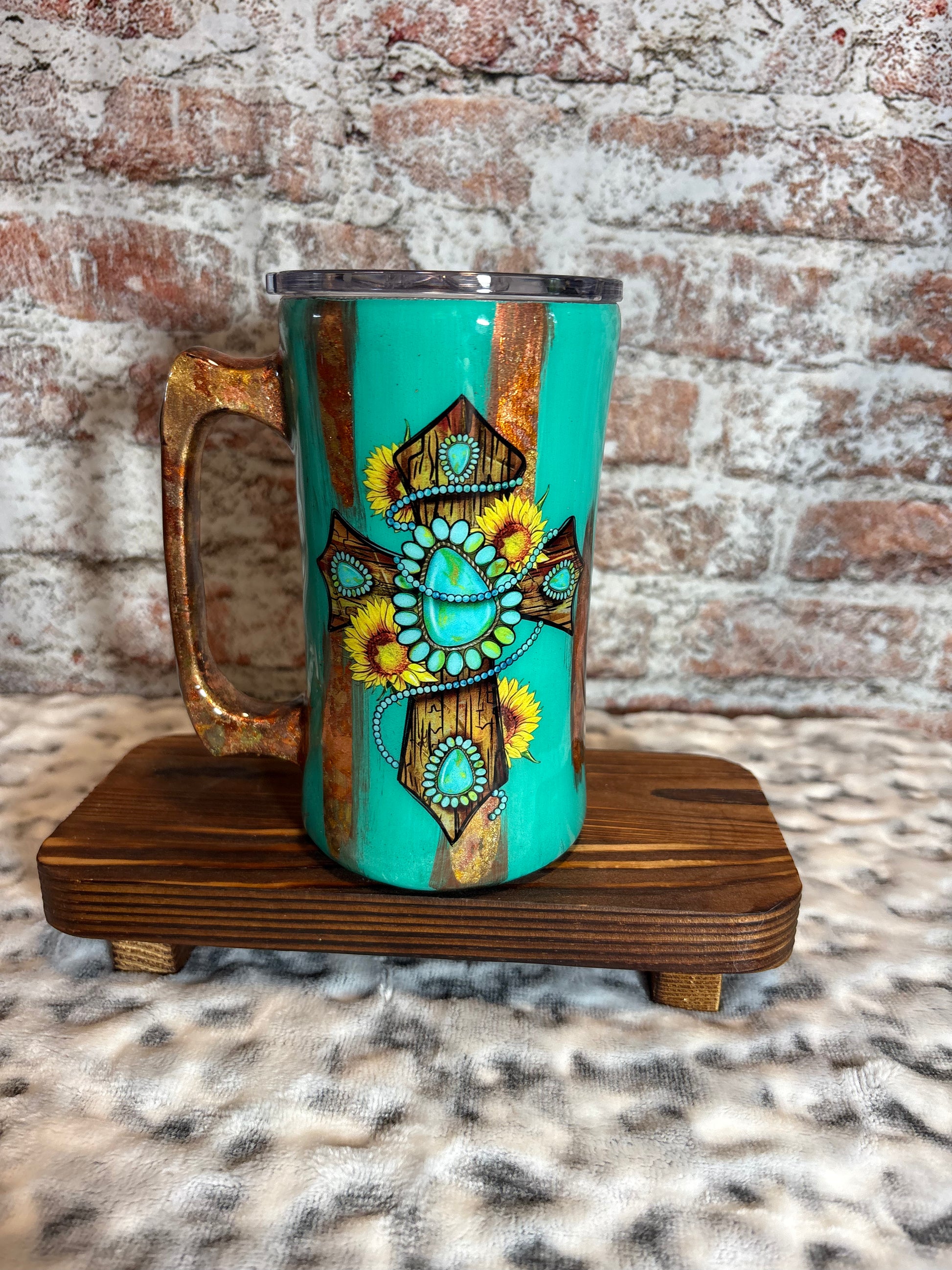Turn heads with these 20oz handled beauties! Whether youβre loving the turquoise cross + sunflower combo π»π or the tooled leather copper patina π§‘π₯, these are must-haves for your western drinkware collection.